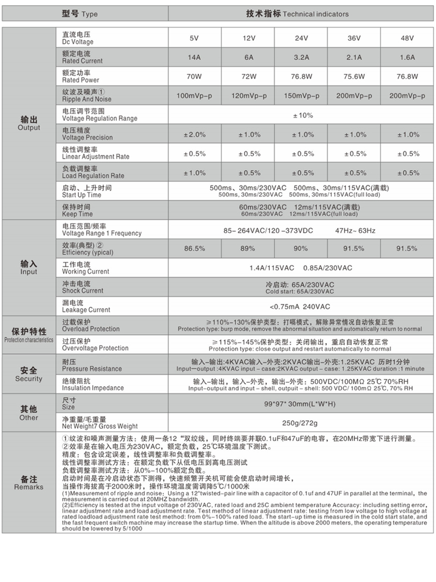 LRS-75系列是一款75W單組輸出封閉型電源供應器,具有30mm低外型設計,采用85-264VAC全范圍交流輸入,整系列提供5V,12V,15V, 24V,36V和48V輸出。除了效率高達91.5%,金屬網外殼的設計加強了散熱能力使LRS-75在沒有風扇的情況下工作在-30C到+70C的溫度范圍內。提供超低空載功耗(小于0.3W),能使終端系統很容易滿足國際能源要求。LRS-75有完整的保護功能和抗5G振動能力;它符合TUVEN60950-1,EN60335-1, EN61558-1/-2-16, UL60950- 1和GB4943國際安全法規,LRS-75系列為各種工業應用提供了一個高性價比的解決方案。